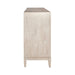 Liberty Furniture Kinsley 4 Door Accent Cabinet in Washed Taupe & Silver Champagne 2146-AC1000. Infused with emotion, the Kinsley four door accent cabinet is sure to turn heads. Crafted with excellence using rubberwood solids with split heart white oak veneers, this piece features a Washed Taupe and Silver Champagne finish. The unique decorative pattern resin door fronts are the showstopper. Behind each set of doors is a large adjustable shelf and wire management provisions to help keep things looking neat and tidy. European soft close door hinges and magnetic door catches make this a piece to last. Transform the ordinary into the extraordinary with the Kinsley four door accent cabinet.